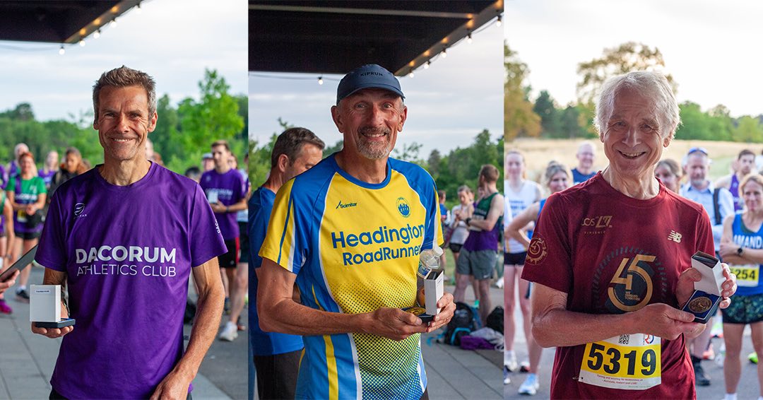 This web page aims to provide a record of runners of Oxfordshire clubs that finish in the top 4 in their age category at running events. I'm not including parkruns and races with fewer than 10 runners. As of Apr 2025, I'm also not including duathlons and triathlons. I'm including a few other successes. You can click any photo to see a better version. My thanks to those who supplied photos.